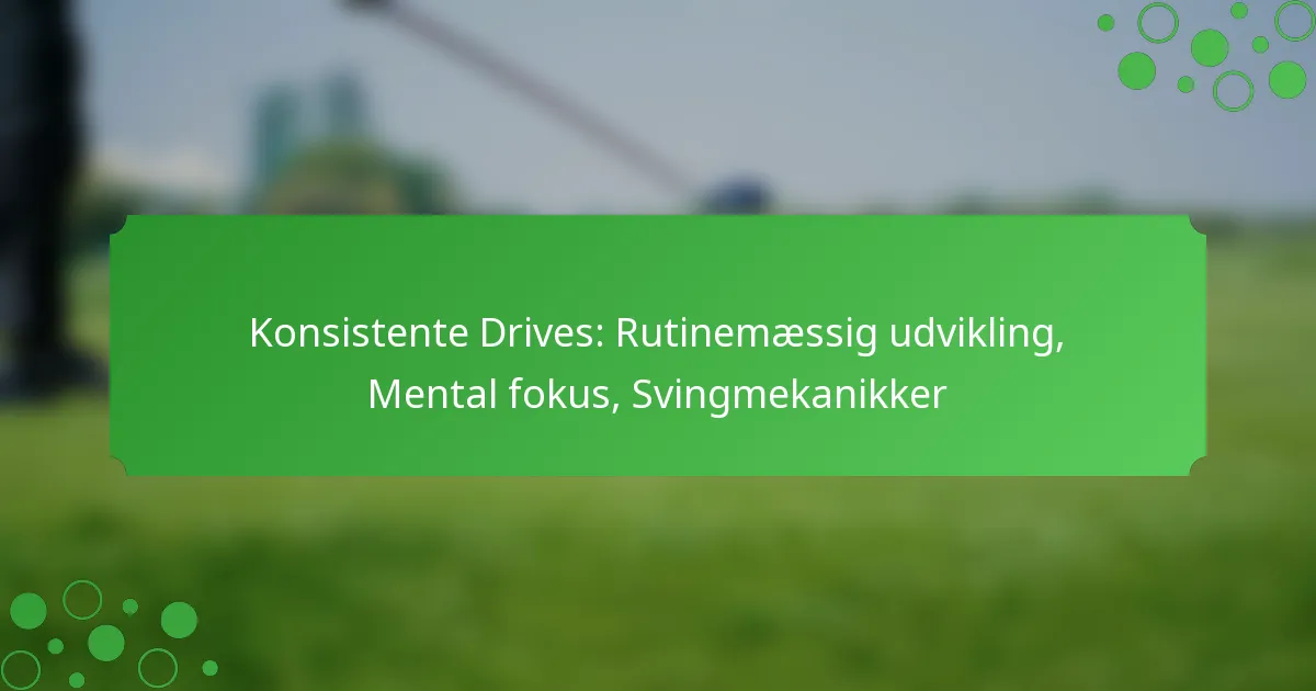 At opnå konsekvente drives i sport kræver en velstruktureret tilgang, der omfatter udvikling af rutiner, mental fokus og forfinede svingmekanikker. Etablering af en solid rutine forbedrer både mental og fysisk præstation, mens forfining af koncentrationen minimerer distraktioner under spil. Derudover er det essentielt at mestre svingmekanikker gennem korrekt kropsholdning, greb og timing for at generere kraft og præcision, hvilket i sidste ende fører til forbedrede resultater på banen.